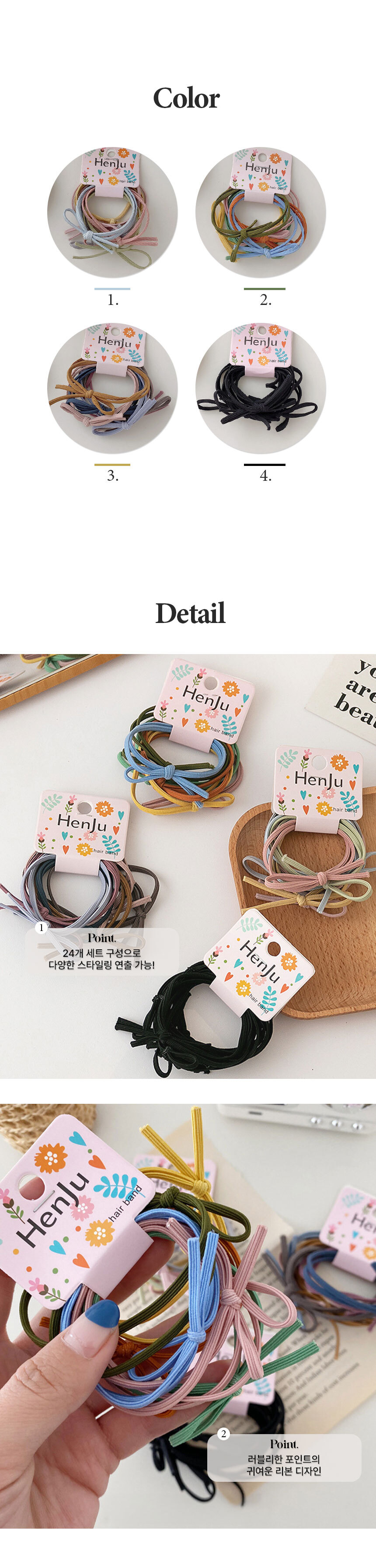 컬러 헤어 고무줄 리본 매듭 파스텔 머리 끈 24P 세트