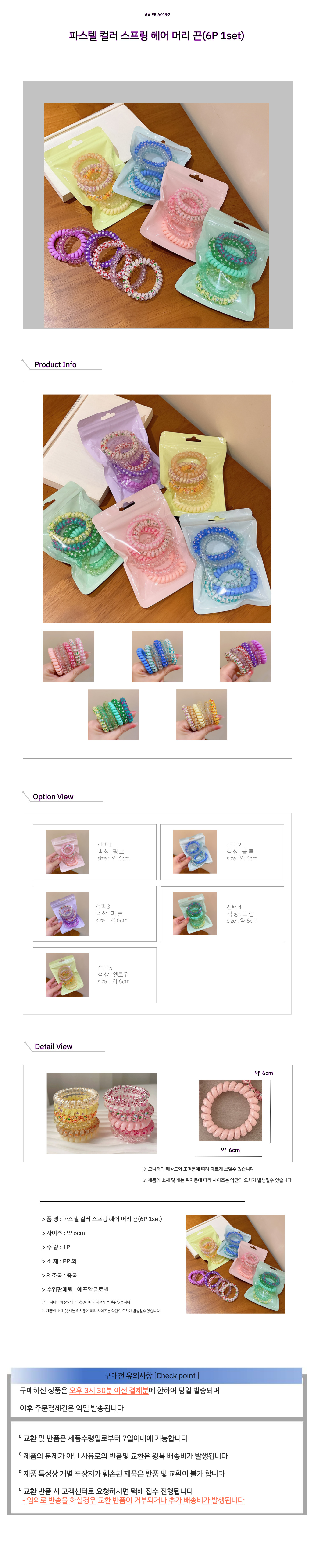 파스텔 컬러 스프링 헤어 머리 끈(6P 1set)