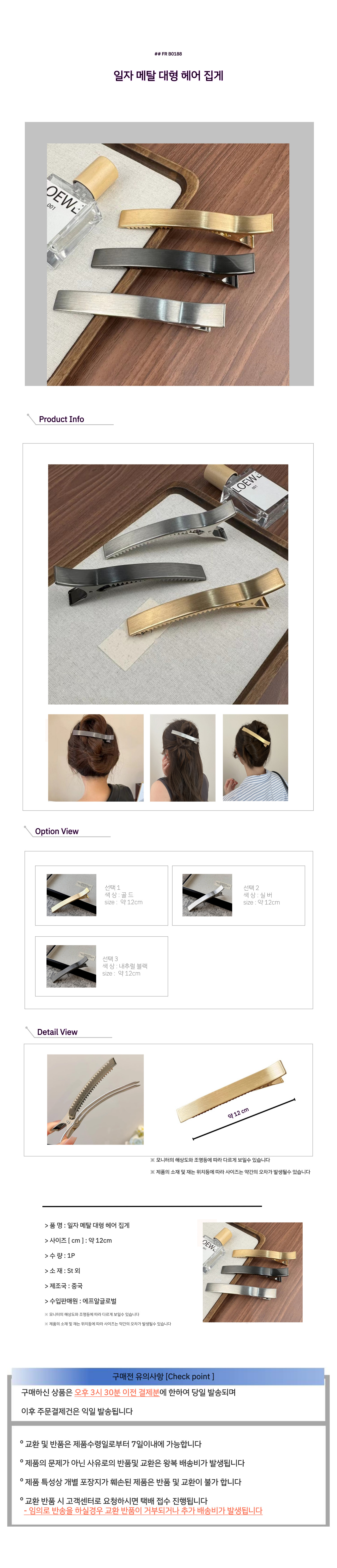 일자 메탈 대형 헤어 집게