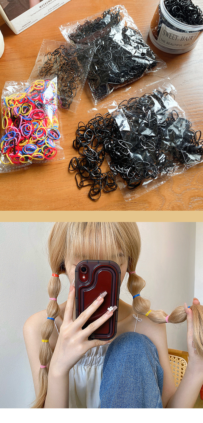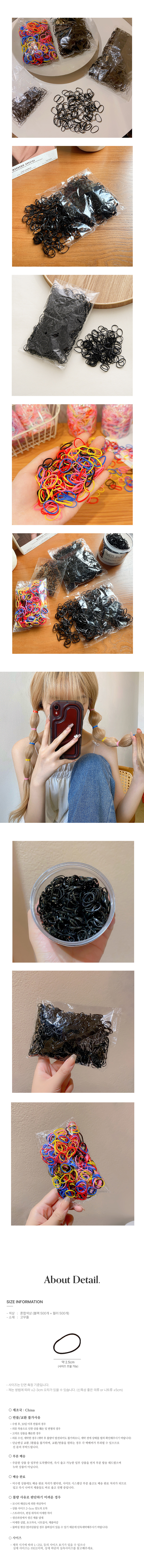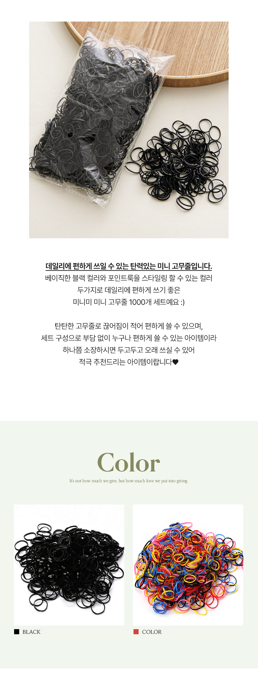 대용량 머리 끈 미니 컬러 검정 고무줄 1000P 세트
