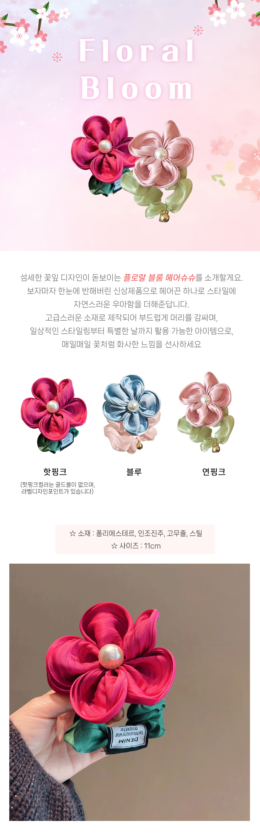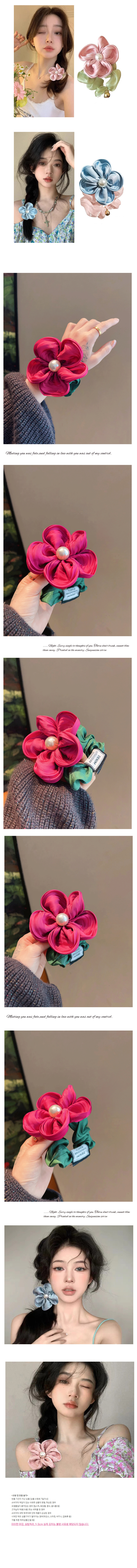 꽃 진주 볼 스크런치 곱창 머리 끈 헤어 슈슈 블루