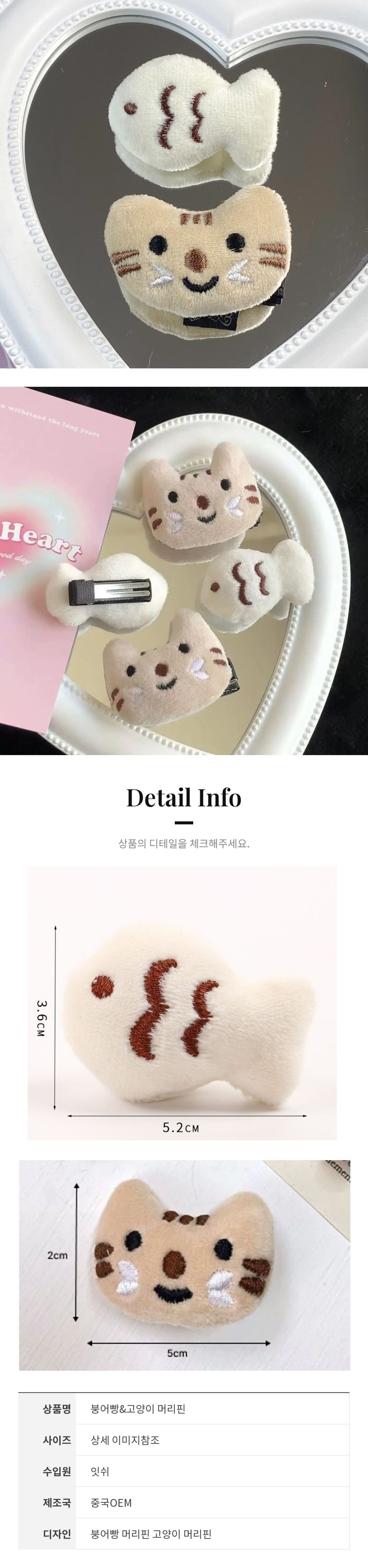 고양이 붕어빵 집게핀 머리핀 헤어핀 머리 헤어 똑딱 삔 클립 악세사리 귀여운 머리집게