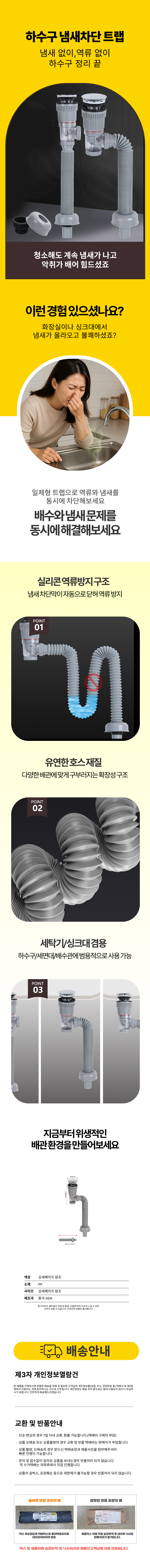 싱크대 냄새 차단 트랩 일체형 하수구 배관 화장실
