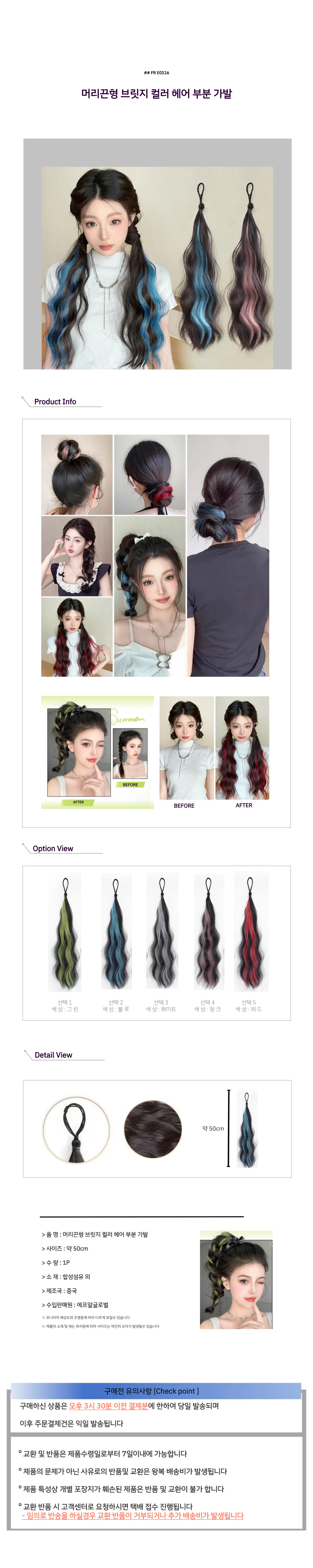 머리끈형 브릿지 컬러 헤어 부분 가발