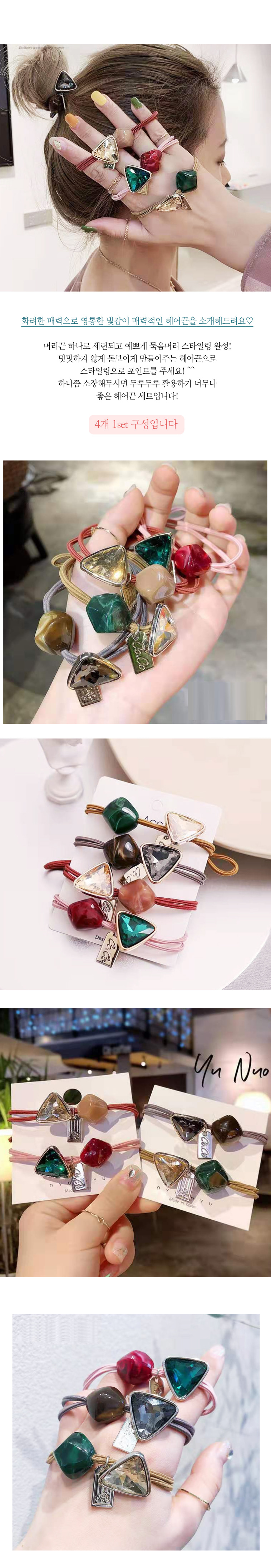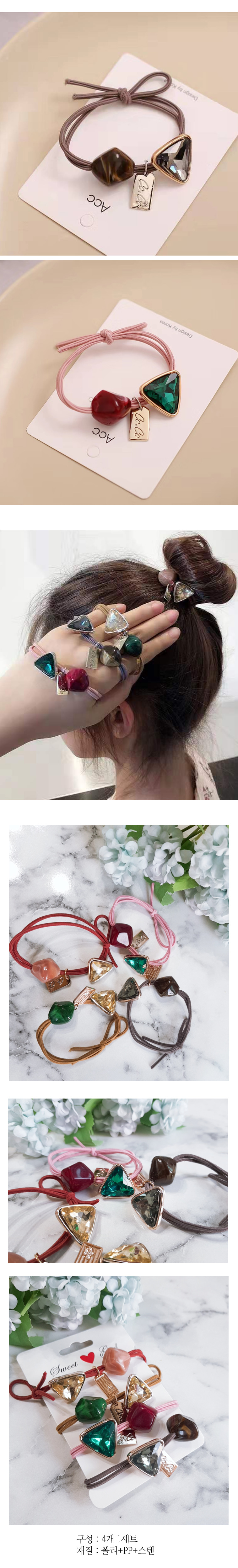 여성 똥 머리 보석 헤어 끈 예쁜 고무줄 4p 세트