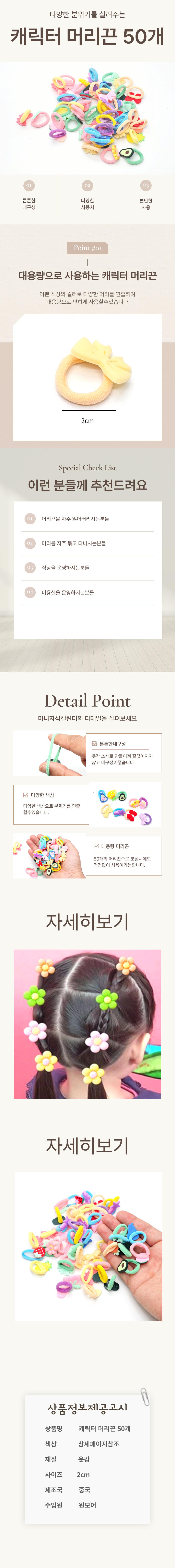 | 품명 및 모델명 | 부드러운 컬러 예쁜 캐릭터 대용량 머리끈 50개 |
