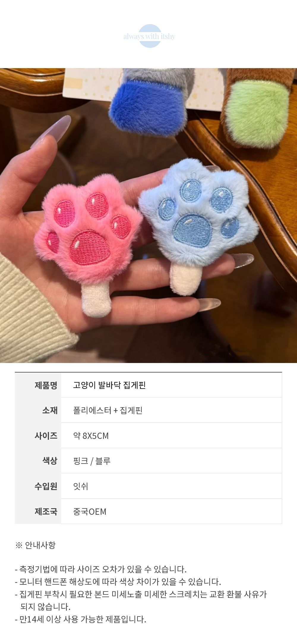 • 모델명고양이 발바닥 집게핀