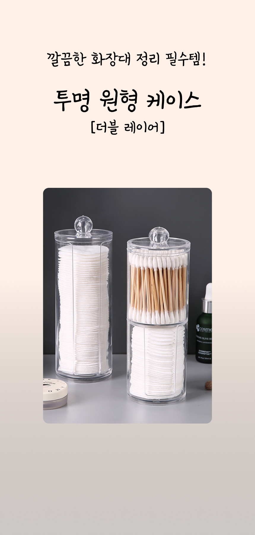 화장솜 보관함 면봉 케이스 투명 아크릴 원형 (더블 레이어)