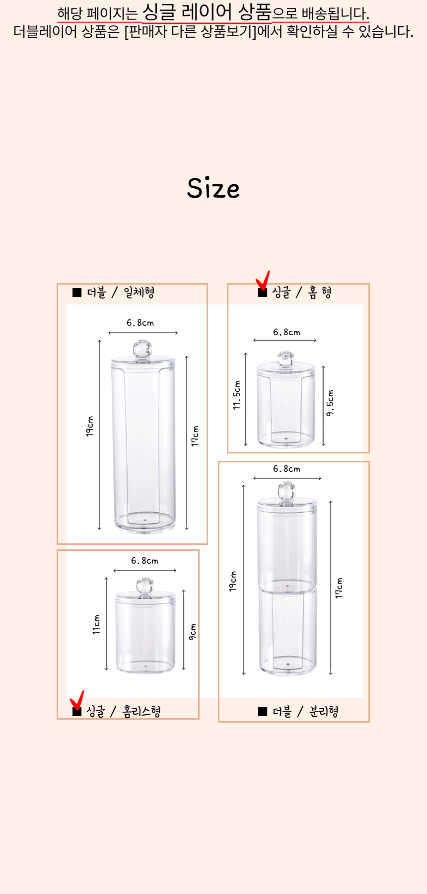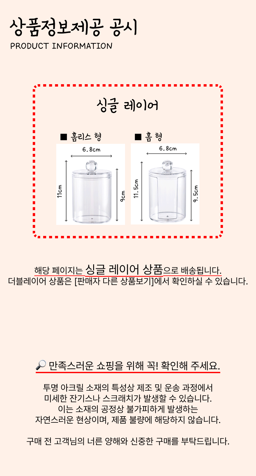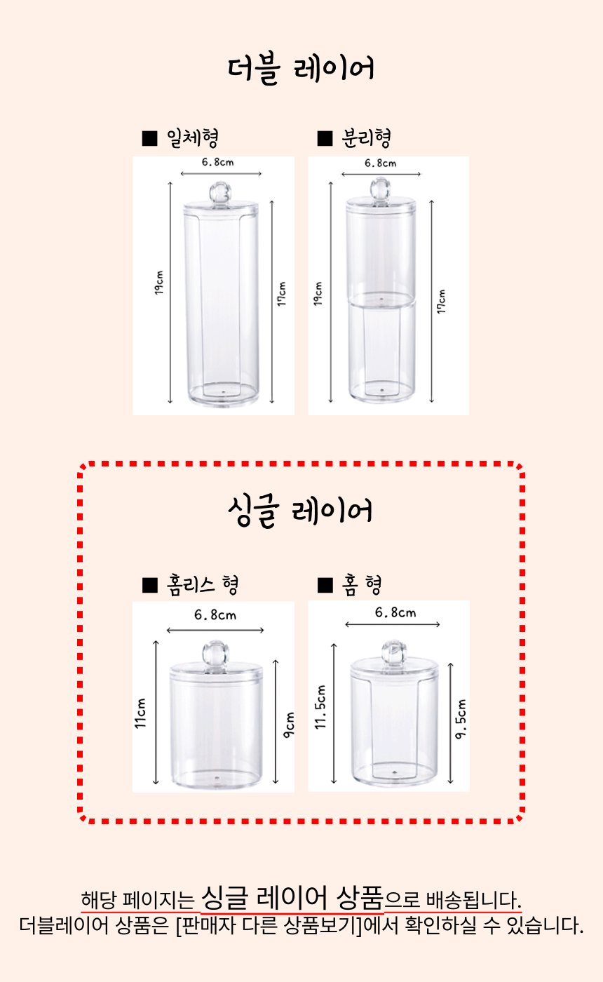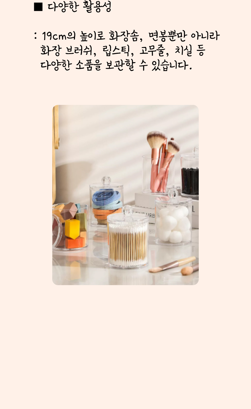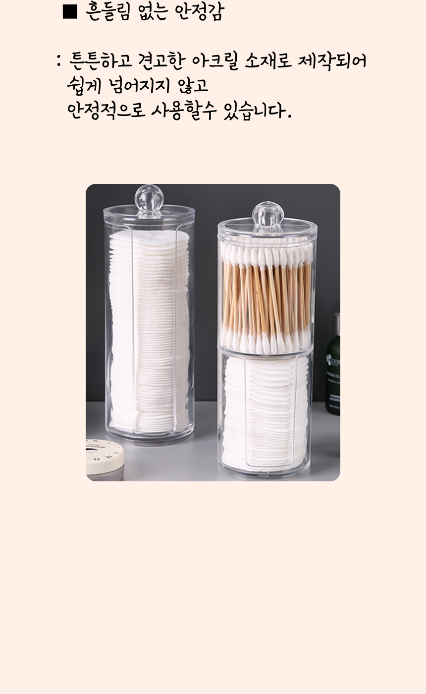 화장솜 케이스 면봉 보관함 투명 아크릴 원형 (싱글 레이어)