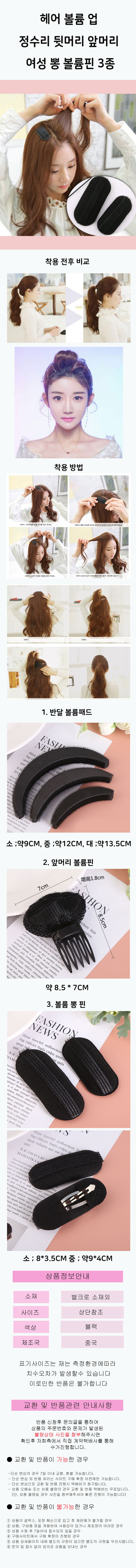 헤어 볼륨 업 정수리 앞뒷머리 부분 뽕 3종 볼륨핀