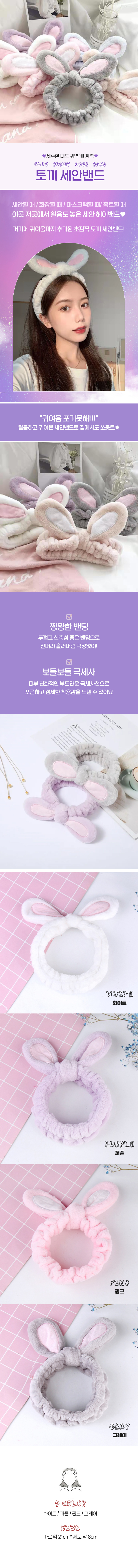 토끼 세안 헤어 머리 밴드 극세사 샤워 세수 머리띠 캐릭터 세안용 헤어밴드