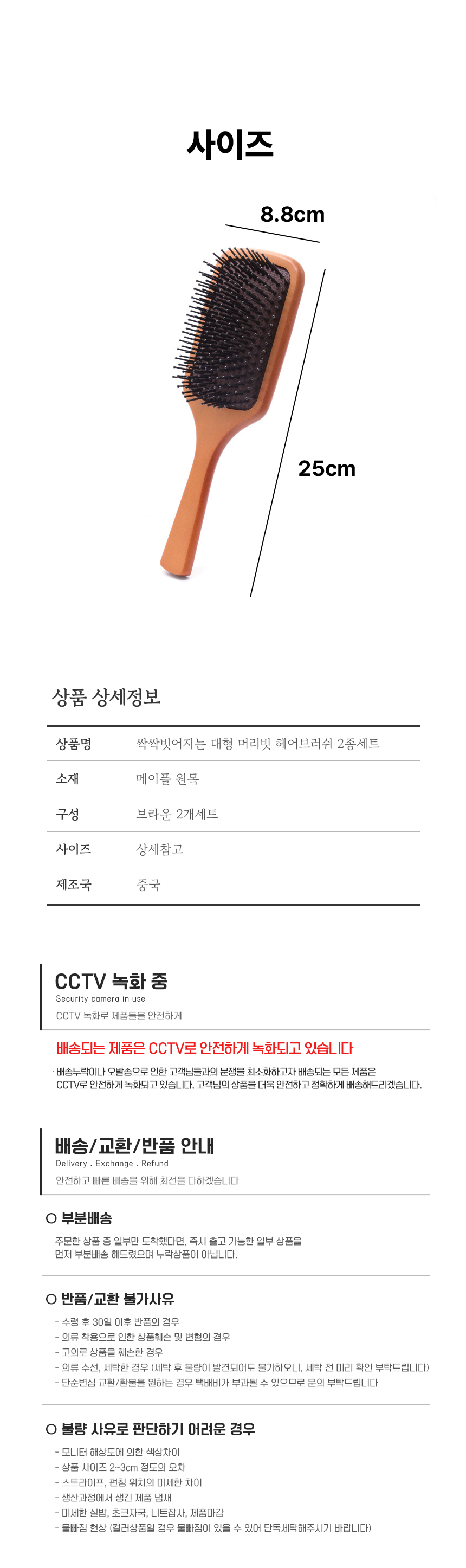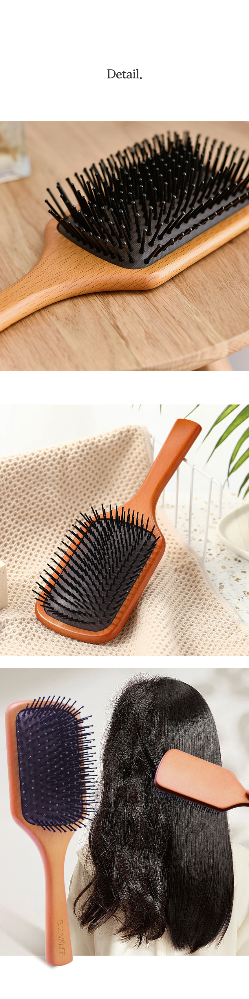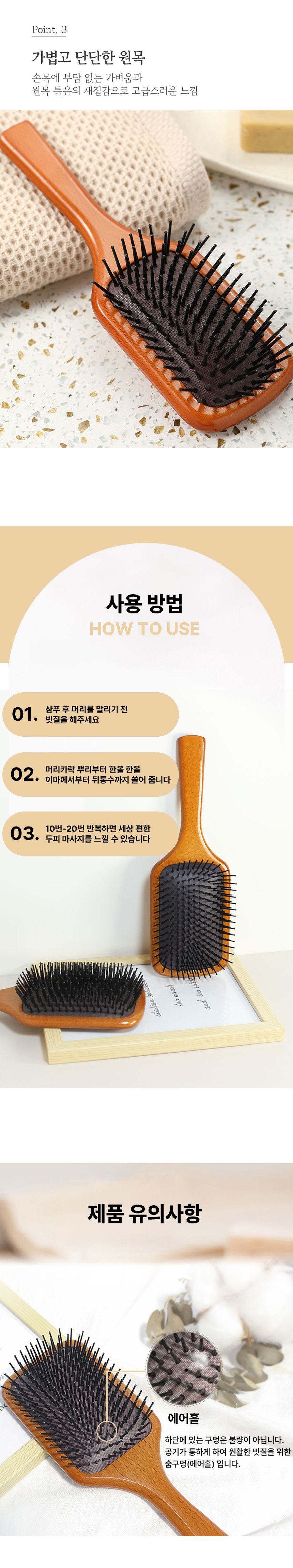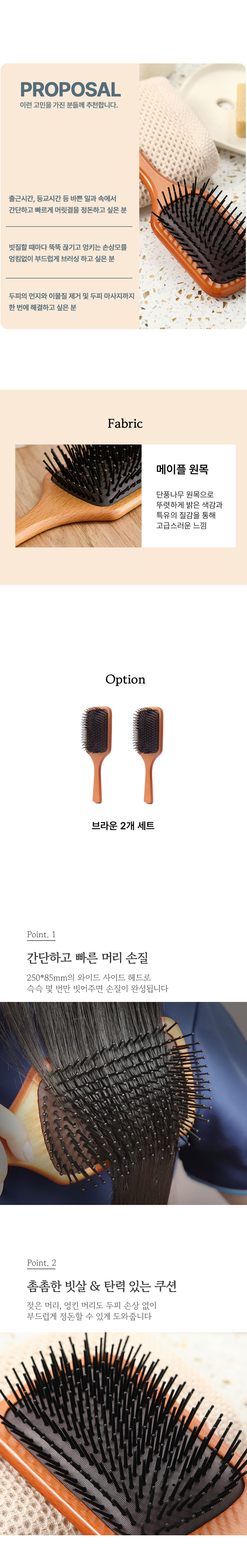 머리 빗 원목 나무 두피 헤어 쿠션 브러쉬 2개 세트