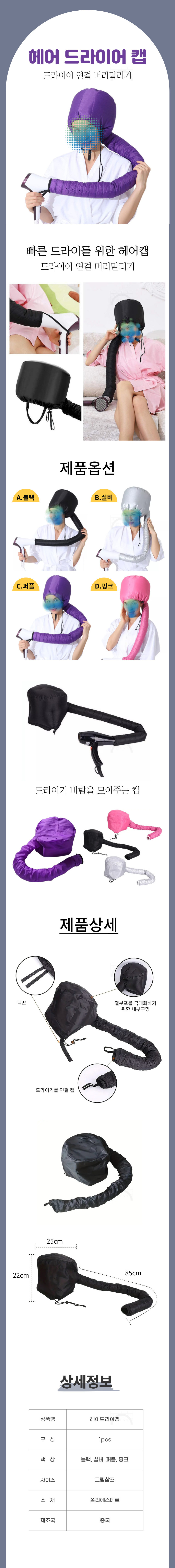 드라이 헤어 드라이캡 드라이기연결 머리말리기