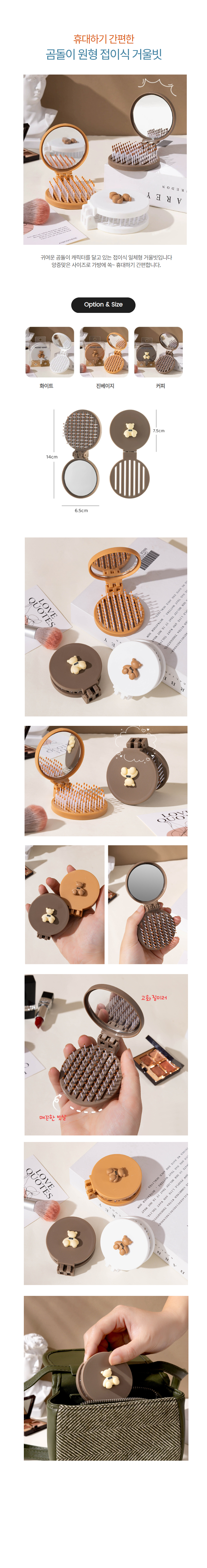 접이식 휴대용 빗거울 세트 손거울빗 머리빗 헤어빗 원형