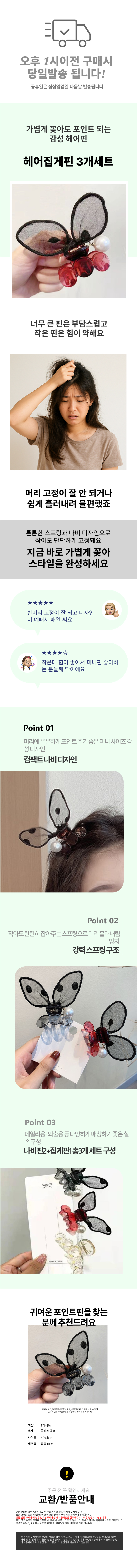 반머리 집게핀 미니 헤어 집게핀 3개세트 FS003
