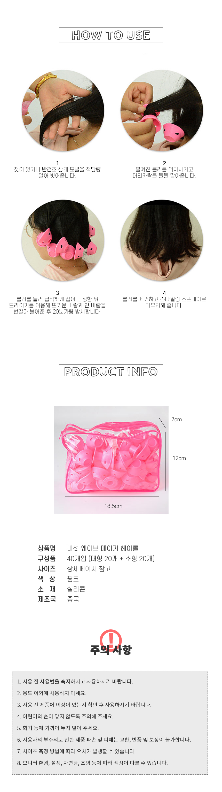 머리 웨이브 컬 셀프 실리콘 헤어 롤 러 40P