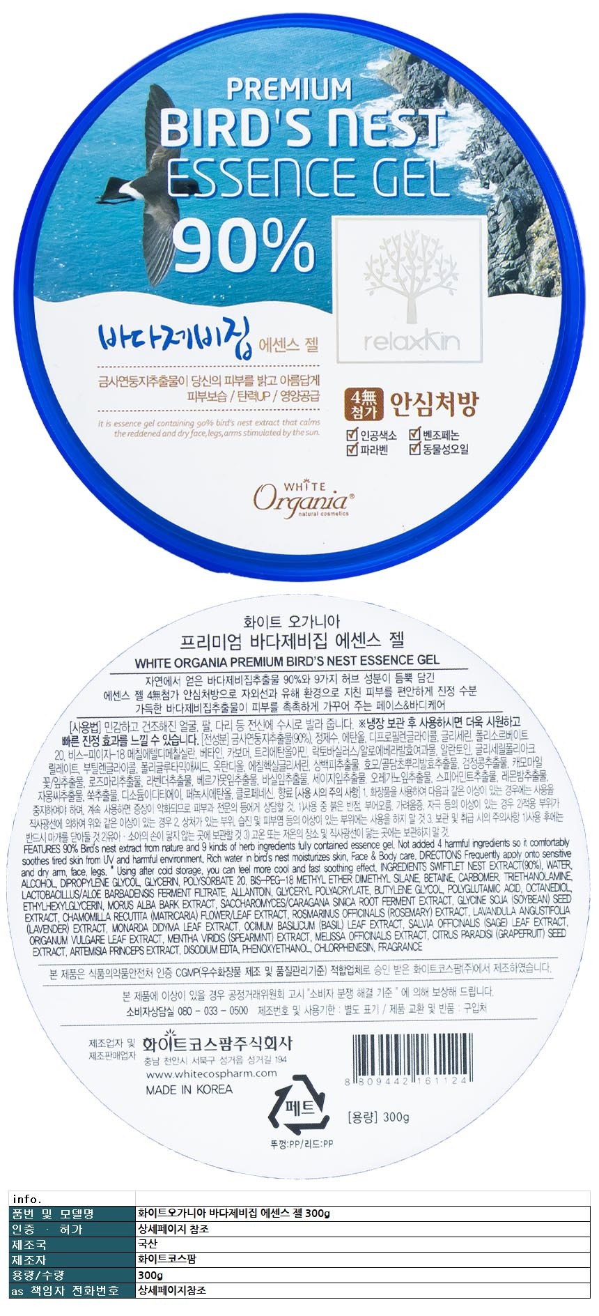 화이트오가니아 바다제비집 에센스 젤 300g