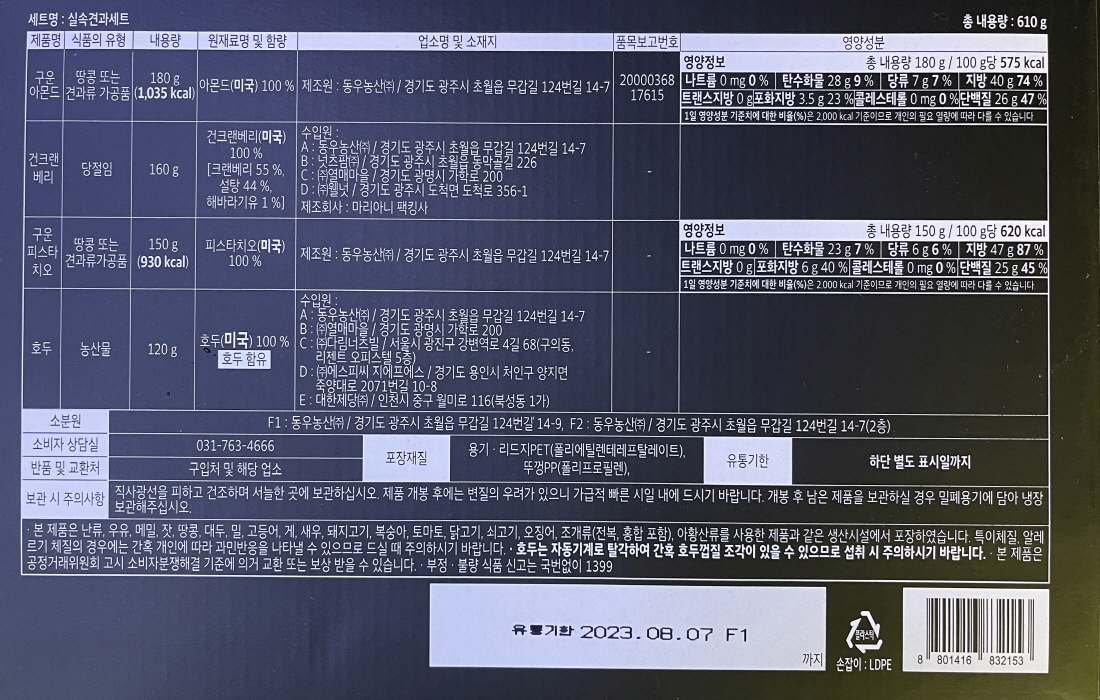 | 식품위생법에 따른 수입신고를 필함 문구 | 고객센터/031-763-4666 |