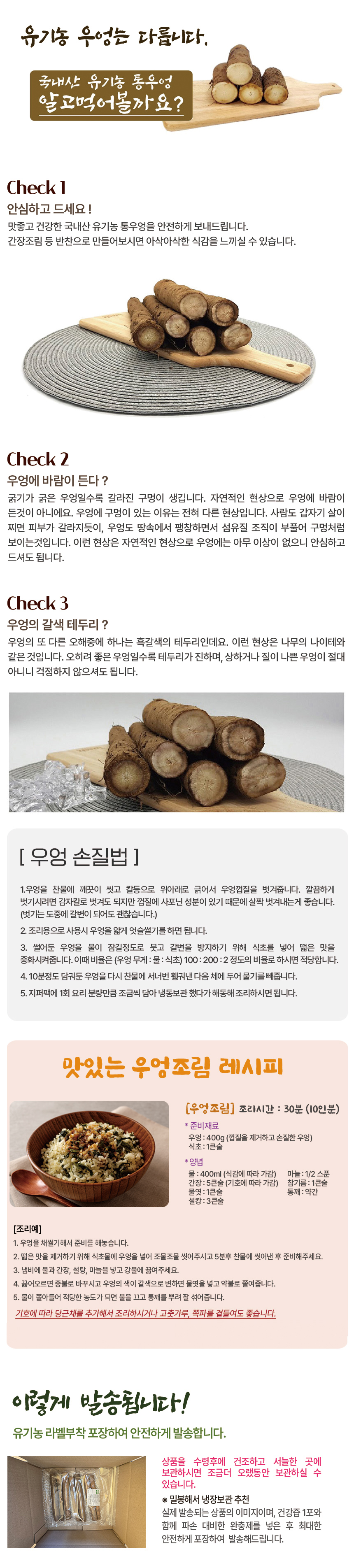| 상품구성 | 유기농 우엉(국내산) 100% |