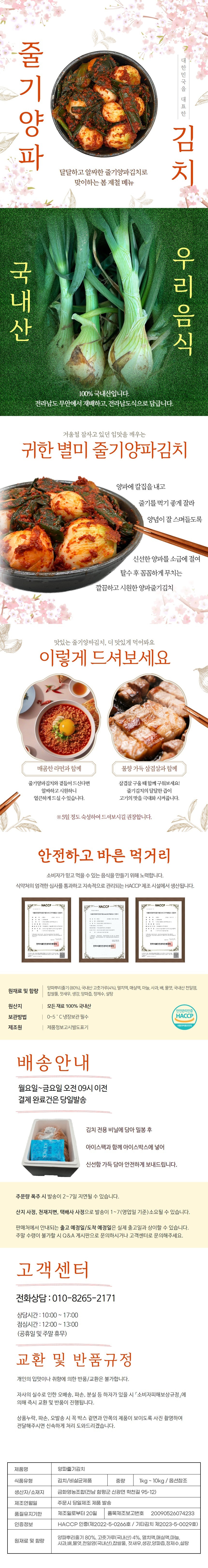 전라도에서 만든 양파줄기김치 1kg / 당일제조 HACCP인증