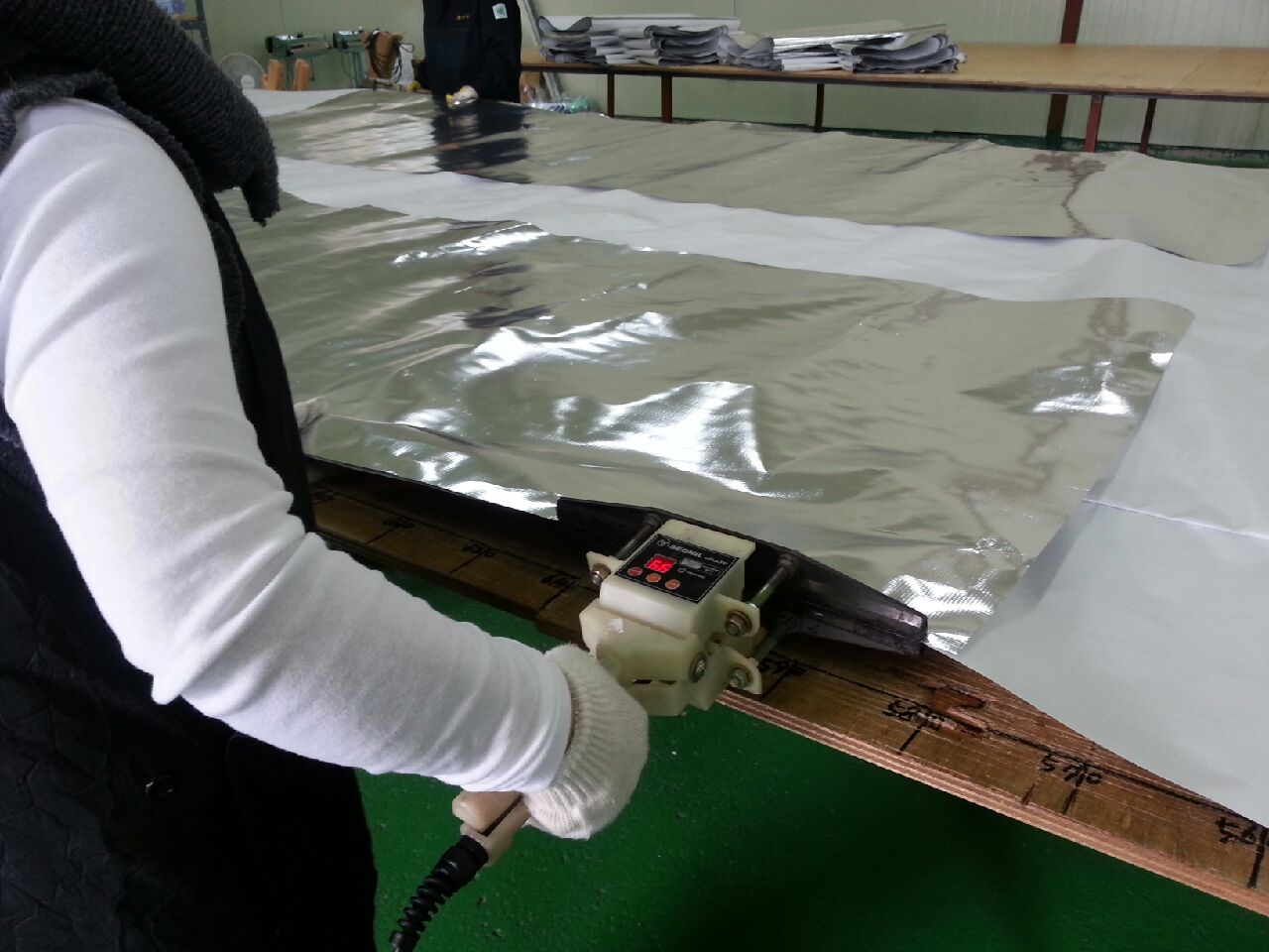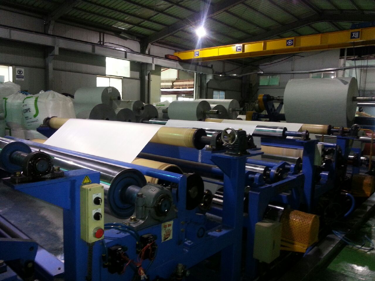원폭롤 제작전, 원단을 중간중간 합지하는 과정인데