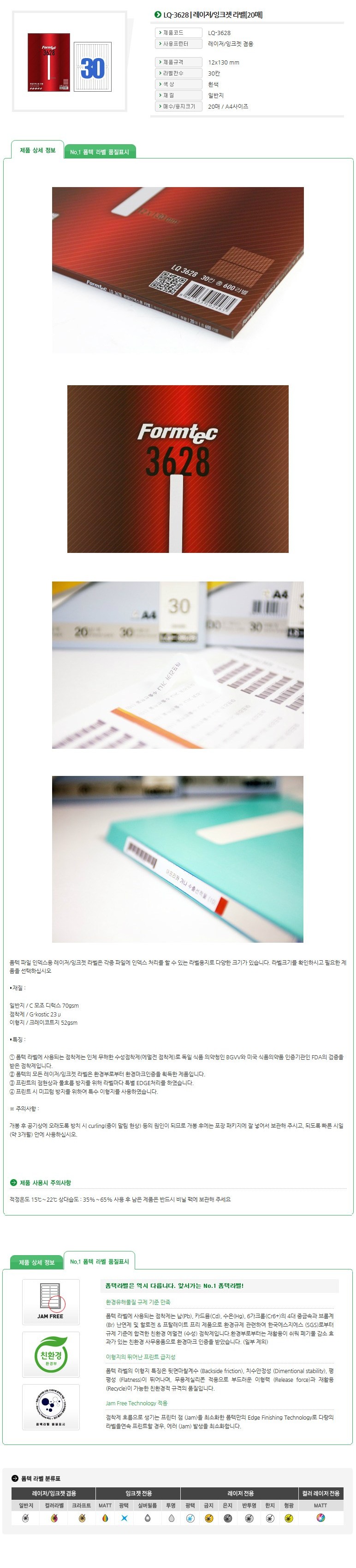 (BE) 폼텍 A4 화일인덱스용라벨 LQ-3628 (30칸20매)