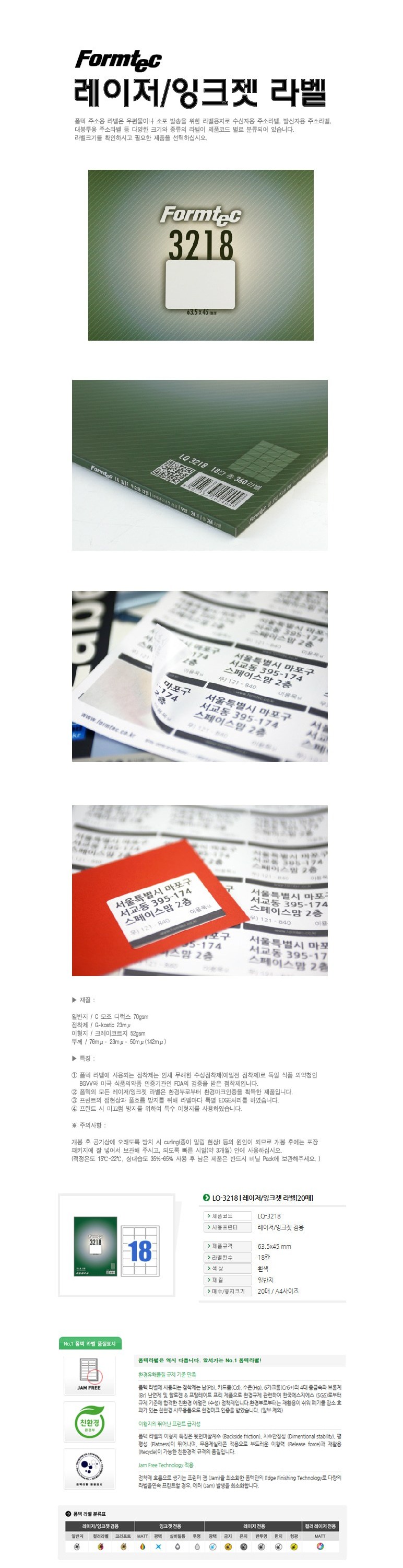 (BE) 폼텍 A4 주소용라벨 LQ-3218 18칸 20매