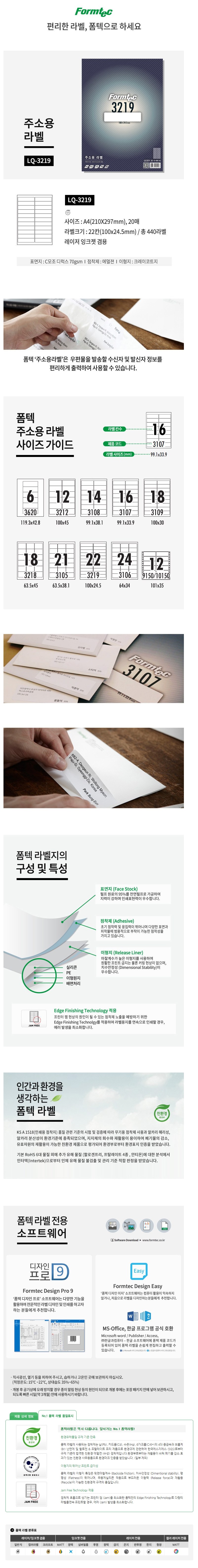 (BE) 폼텍 A4 주소용라벨 LQ-3219 22칸 20매