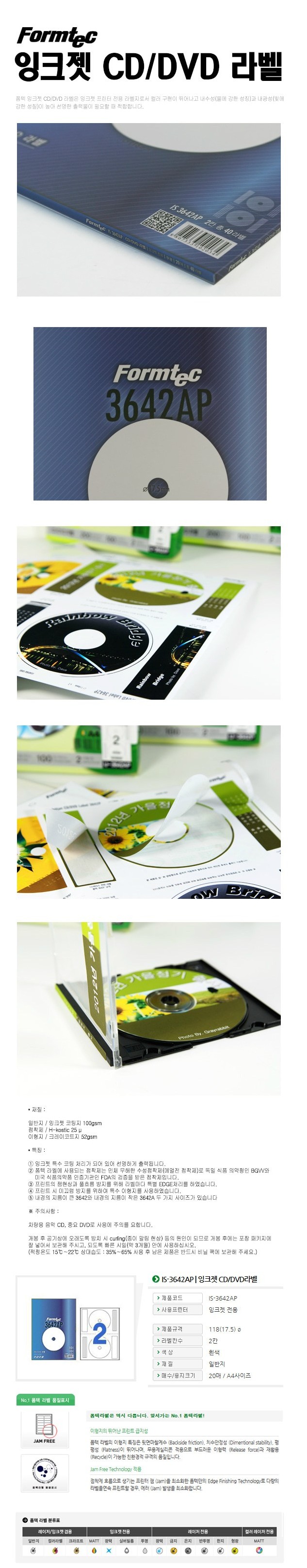 (BE) 폼텍 잉크젯 CD DVD라벨 IS-3642AP 2칸 20매