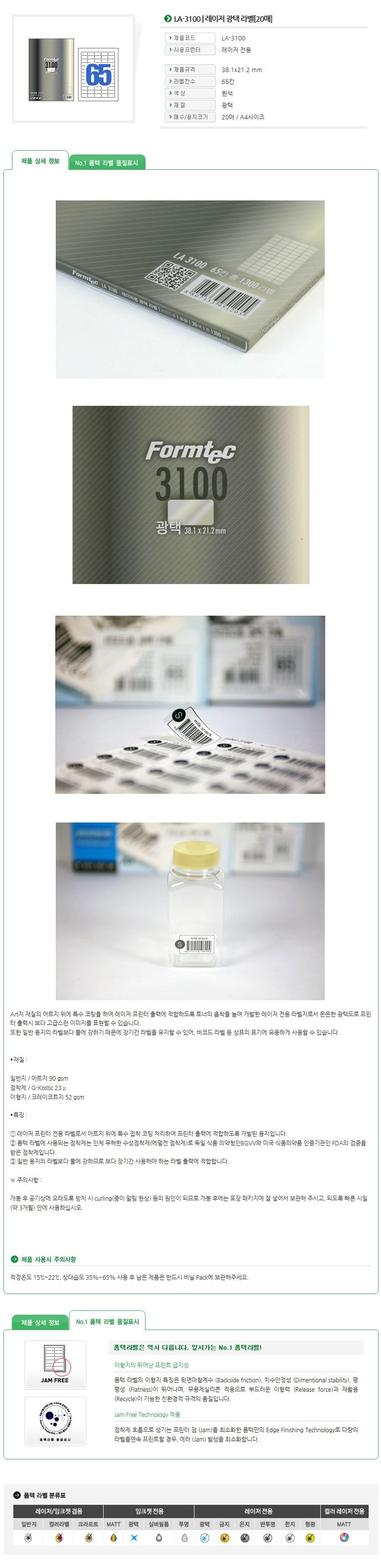 (BE) 폼텍 A4 바코드라벨 LA-3100 65칸 20매