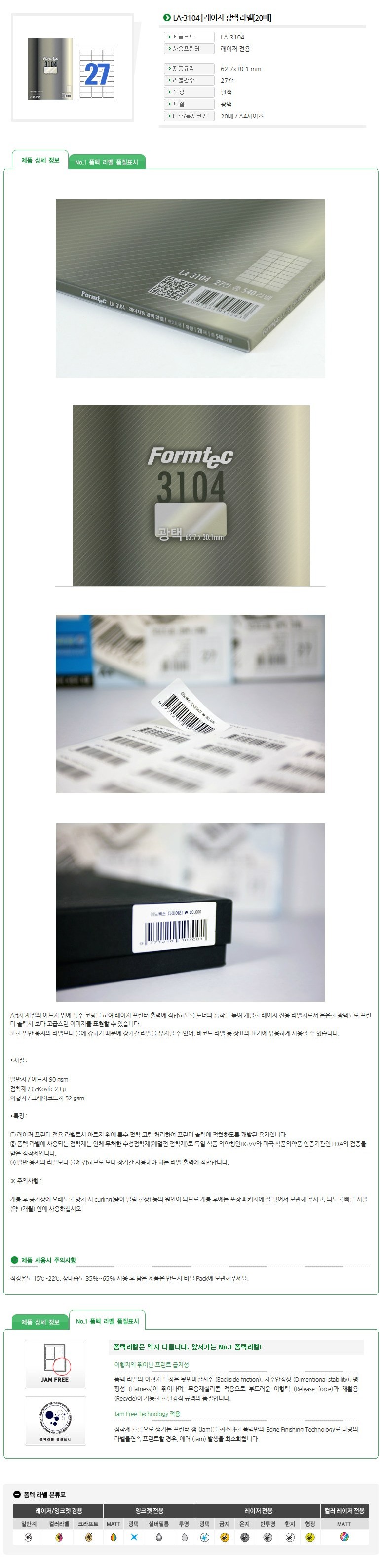 (BE) 폼텍 A4 바코드라벨 LA-3104 27칸 20매