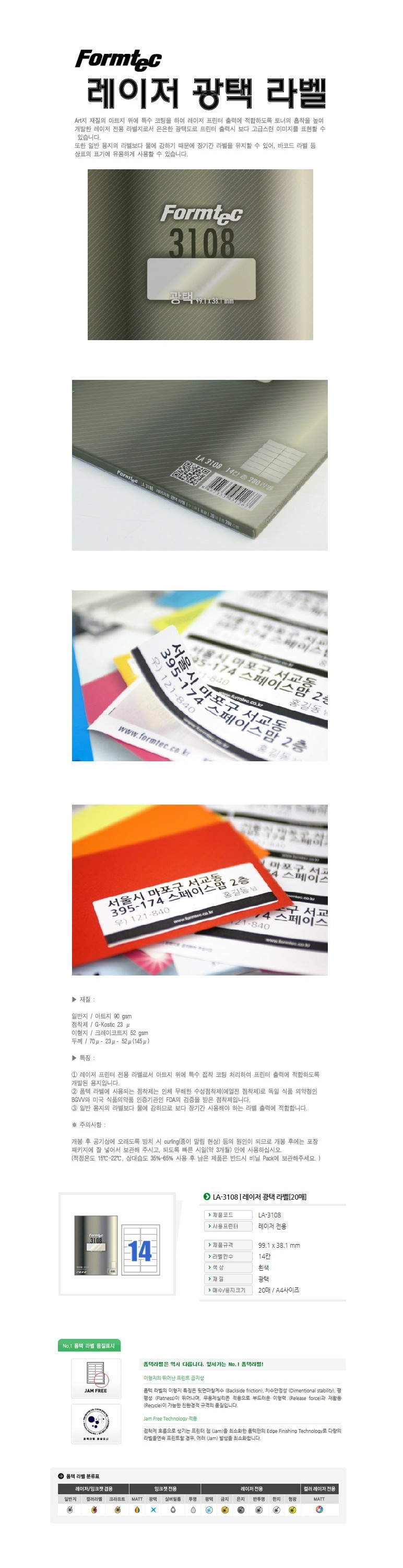 (BE) 폼텍 A4 주소용라벨 LA-3108 14칸 20매