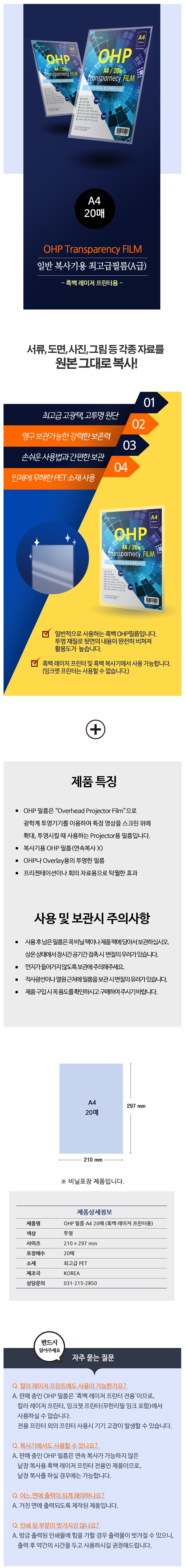 • 모델명(BE) OHP필름 A4 20매
