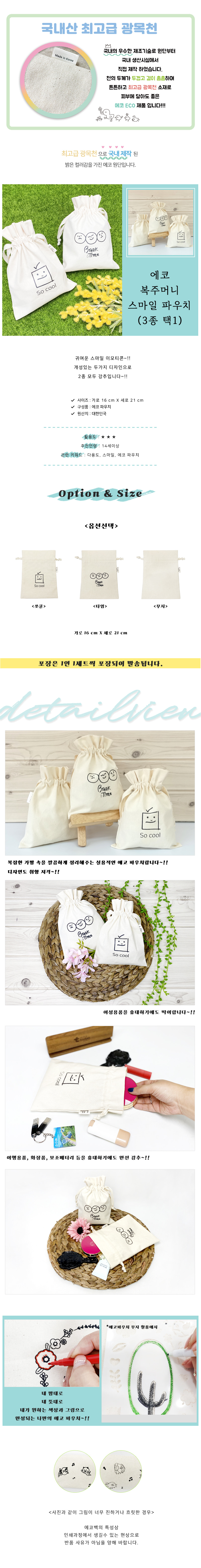(TD) (취미키트) 에코 복주머니 스마일 파우치-1인