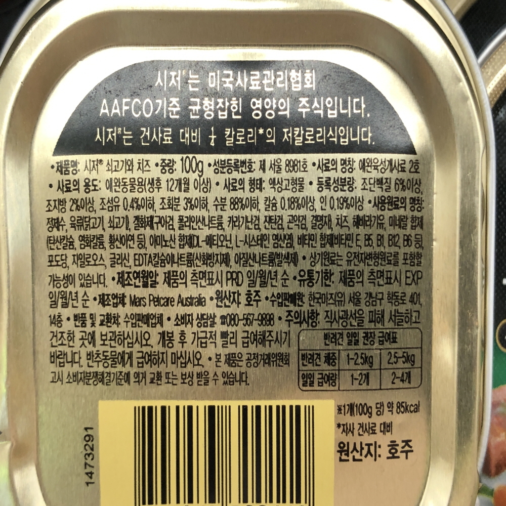 시저 Cesar 쇠고기와 치즈 애견 반려견 사료 100g