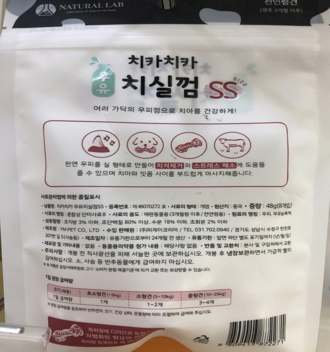 치카치카 우유 치실껌 반려견 애견 도그 SS 8P 48g