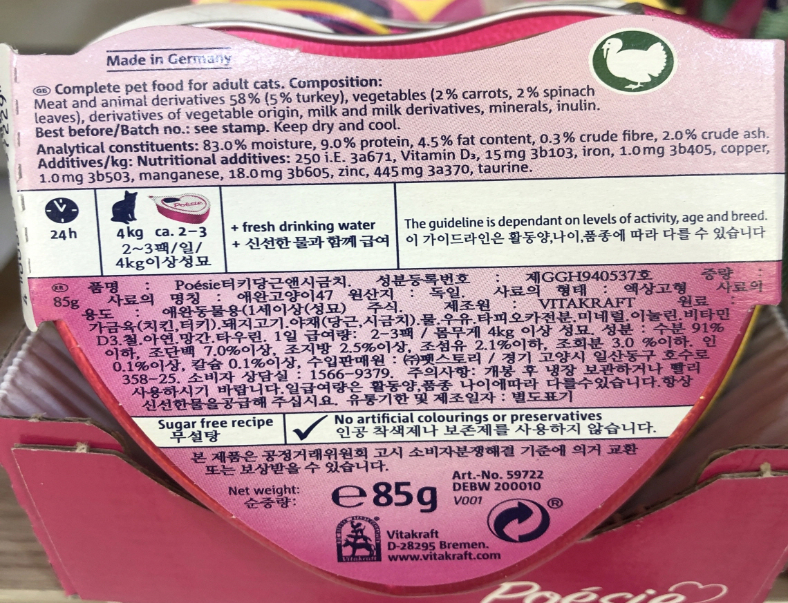 포에시 치킨 야채 반려묘 애묘 고양이 사료 85g