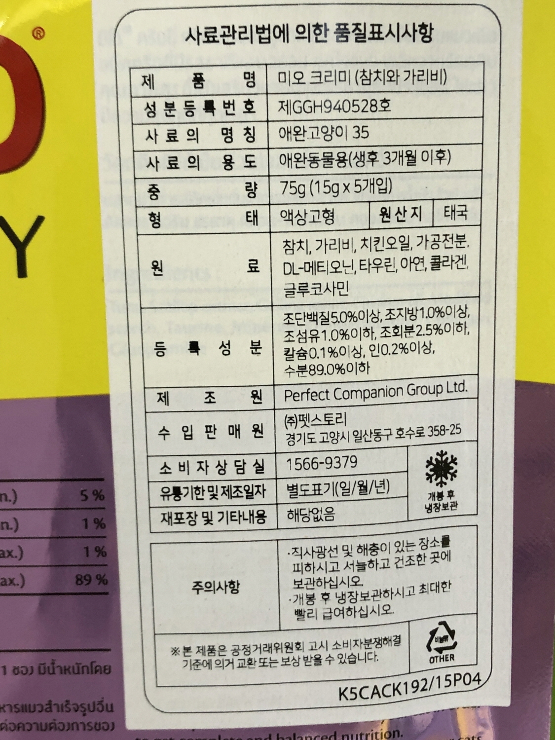 Me-O 미오 크리미 참치 가리비 스낵 반려묘 사료 75g