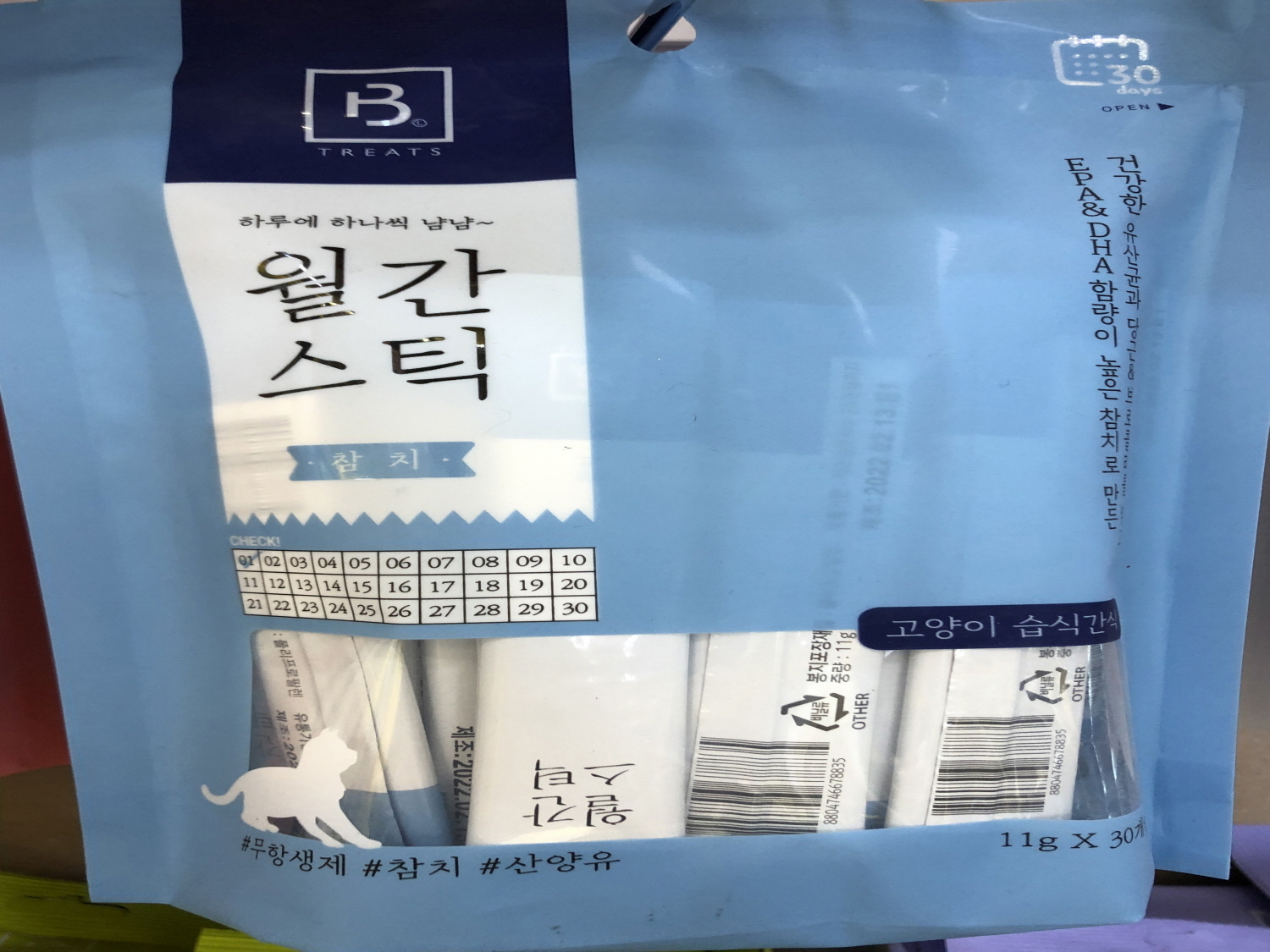 월간스틱 짜먹는 참치 반려묘 간식 사료 11gX30P