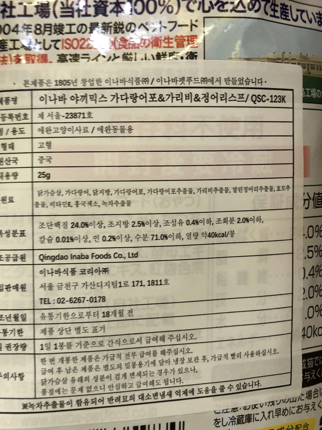 이나바야끼믹스 가다랑어 가리비정어리 반려묘사료25g