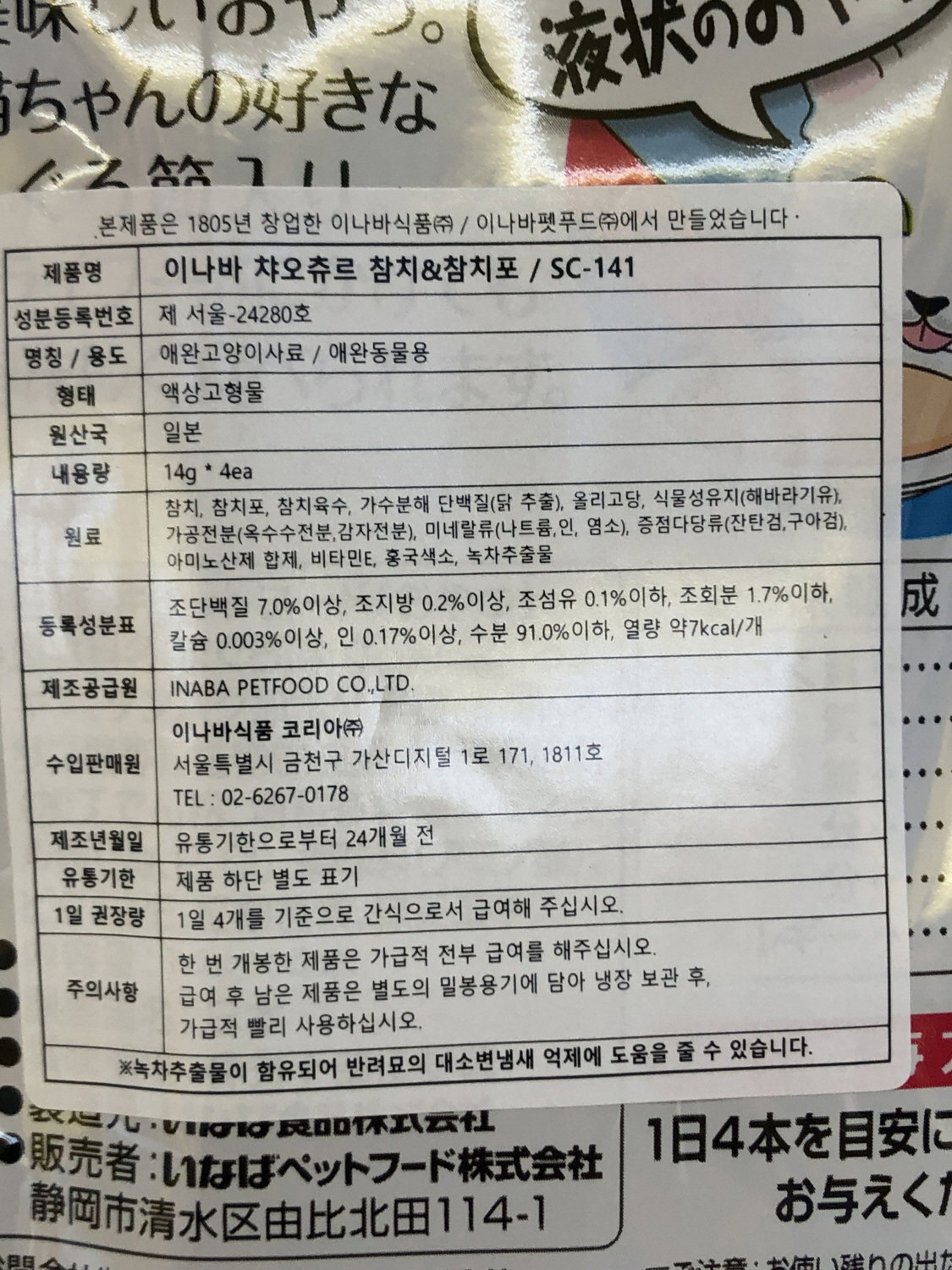 이나바 차우츄르 참치 참치포 반려묘 사료 14gX4P