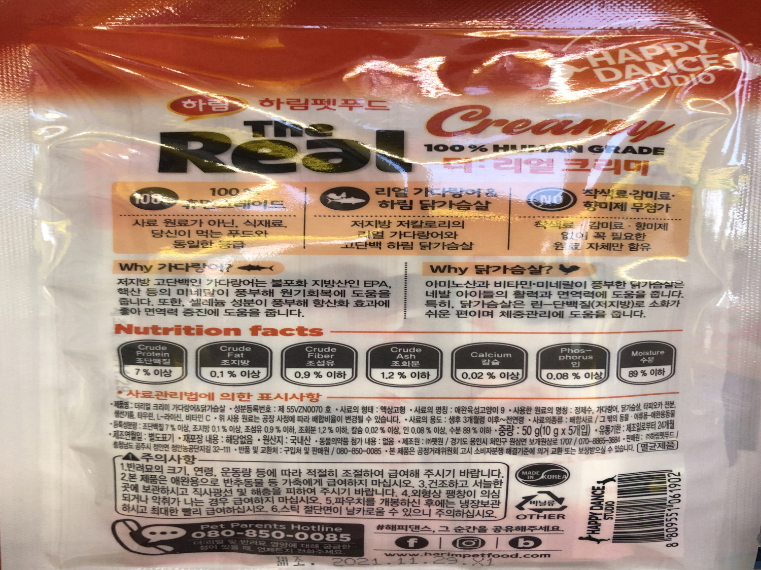 하림 더리얼크리미 가다랑어 닭가슴살 반려묘 사료50g