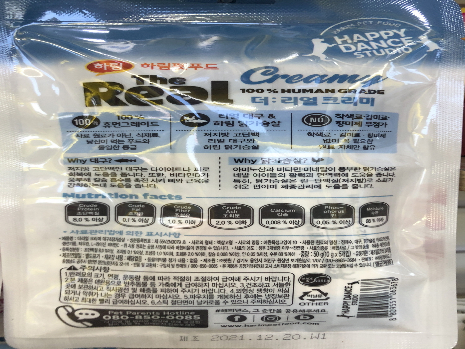 하림 더리얼 크리미 대구 닭가슴살 반려묘 사료 50g