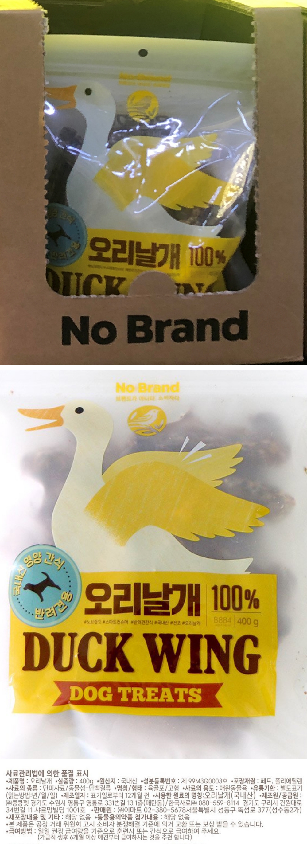 노브랜드 오리날개 400g 반려견용 애견 사료
