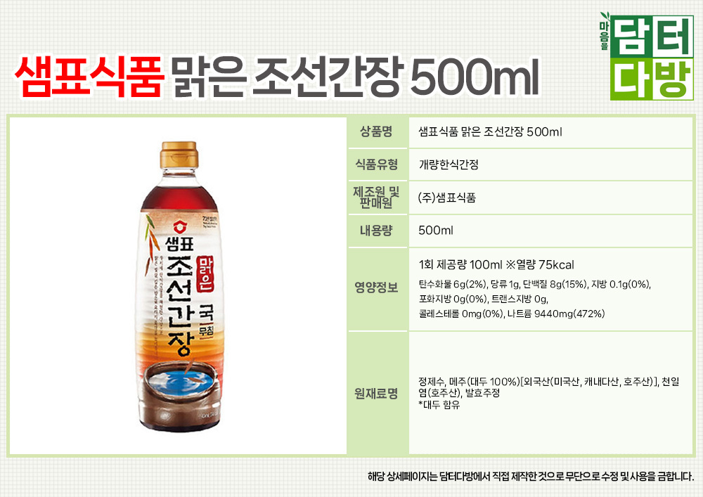 샘표식품 맑은 조선간장 500ml X 3개