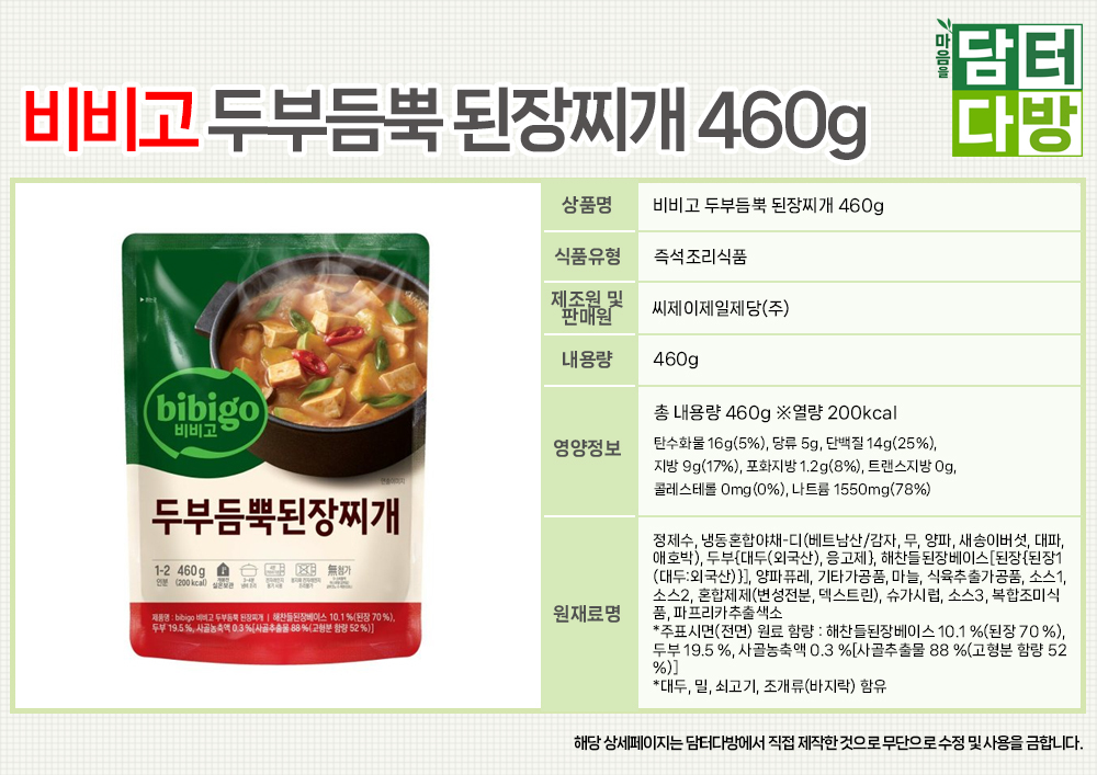 비비고 두부듬뿍 된장찌개 460g X 5개