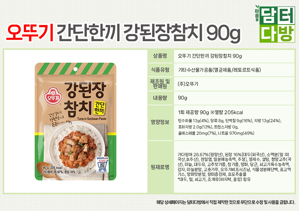 오뚜기 간단한끼 강된장참치 90g X 10개