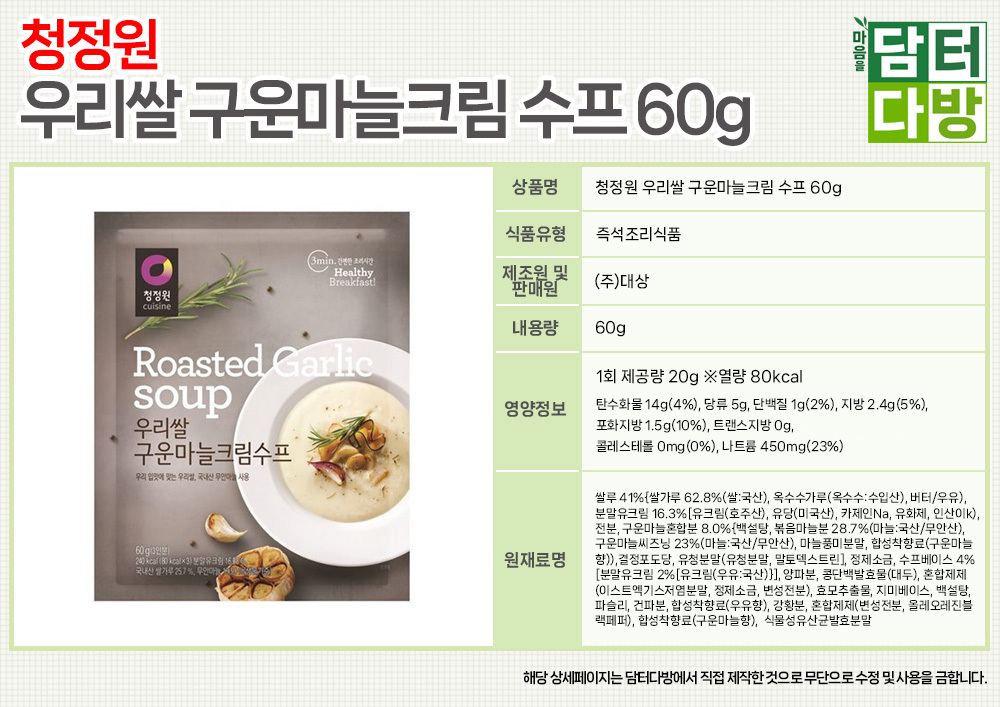청정원 우리쌀 구운마늘크림 수프 60g X 5개