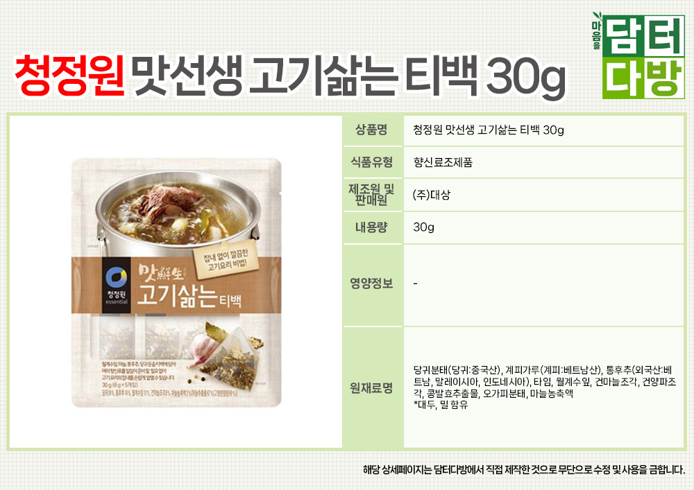 청정원 맛선생 고기삶는 티백 30g X 3개