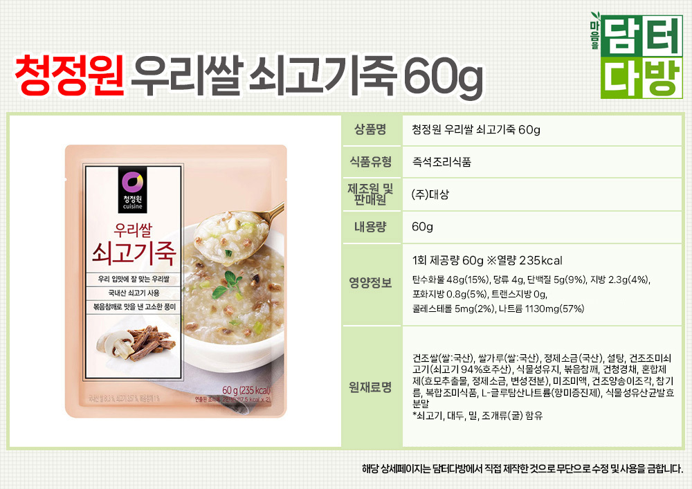 청정원 우리쌀 쇠고기죽 60g X 5개